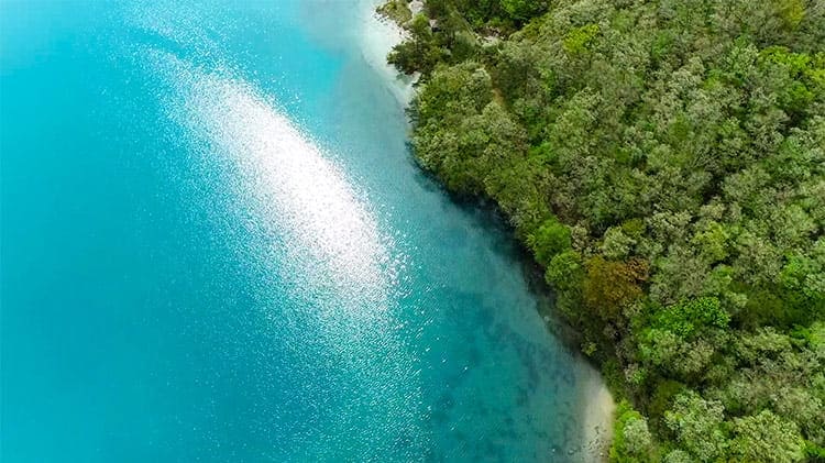 天候によって湖面の色が変わる、カルデラ湖。